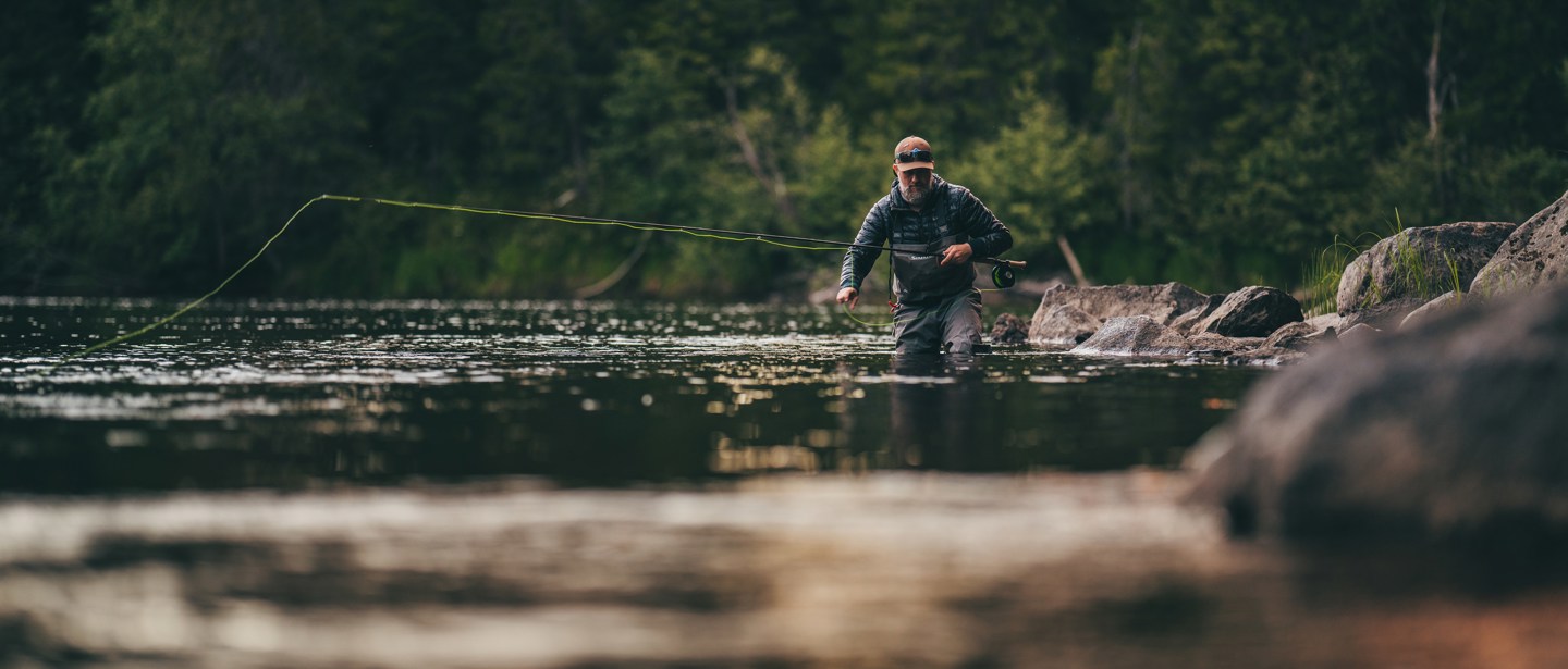 Förutom att kasta tunga sjunklinor ska en byskefiskare vara beredd på att vada djupt. Givetvis inte alltid och på alla platser men Byskeälven är tuff. Helst tidigt på säsongen. Det ska man ha klart sig. Det gör att Byskeälven inte är för alla. Men å andra sidan är det få fiskar som värmer ett sargat flugfiskarhjärta som en silverblänkande byskeälvslax mot en fond av skir försommargrönska.