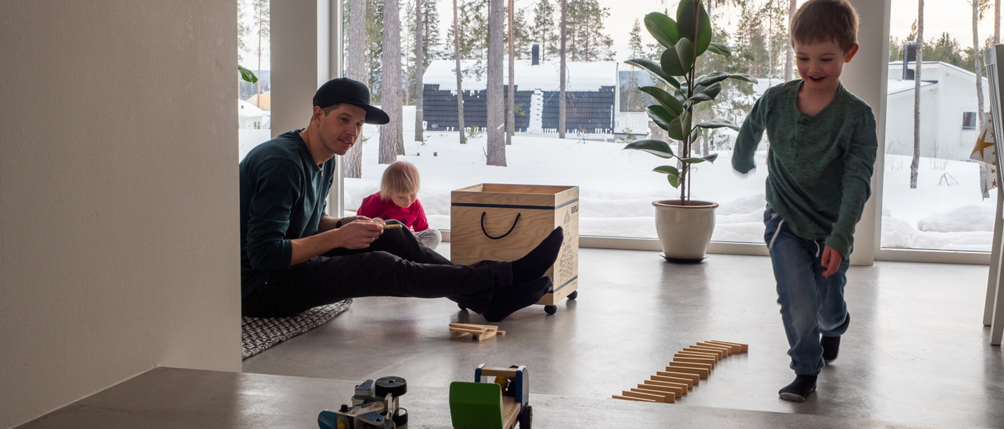 Klas bygger inte bara bo utan även familj. Tillsammans med sin Sambo Johanna har han tre barn, tre och fem och ett år gamla
