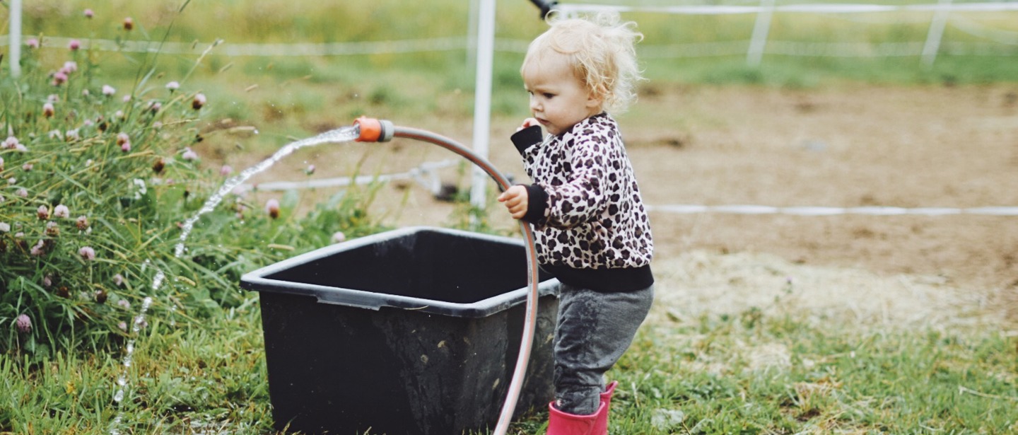 Där och då bestämde sig Isabell för att prova på att odla. Visst, hon hade sått tomater och gurka tidigare men det hade inte blivit inte så bra. Nu beställde hon hem frön och funderade på vad hon kunde använda sig av som redan fanns på gården. Hästbajs hade de mycket av då de vid tillfället hade hästar på gården, och ensilage fanns det gott om, så när våren kom byggde hon upphöjda bäddar efter inspiration från Instagram. Med hjälp av en skottkärra skjutsade hon både bajs och dotter, hon byggde bäddar, la kartong och träflis i gångarna och sådde de flesta fröerna direkt ute i landet.