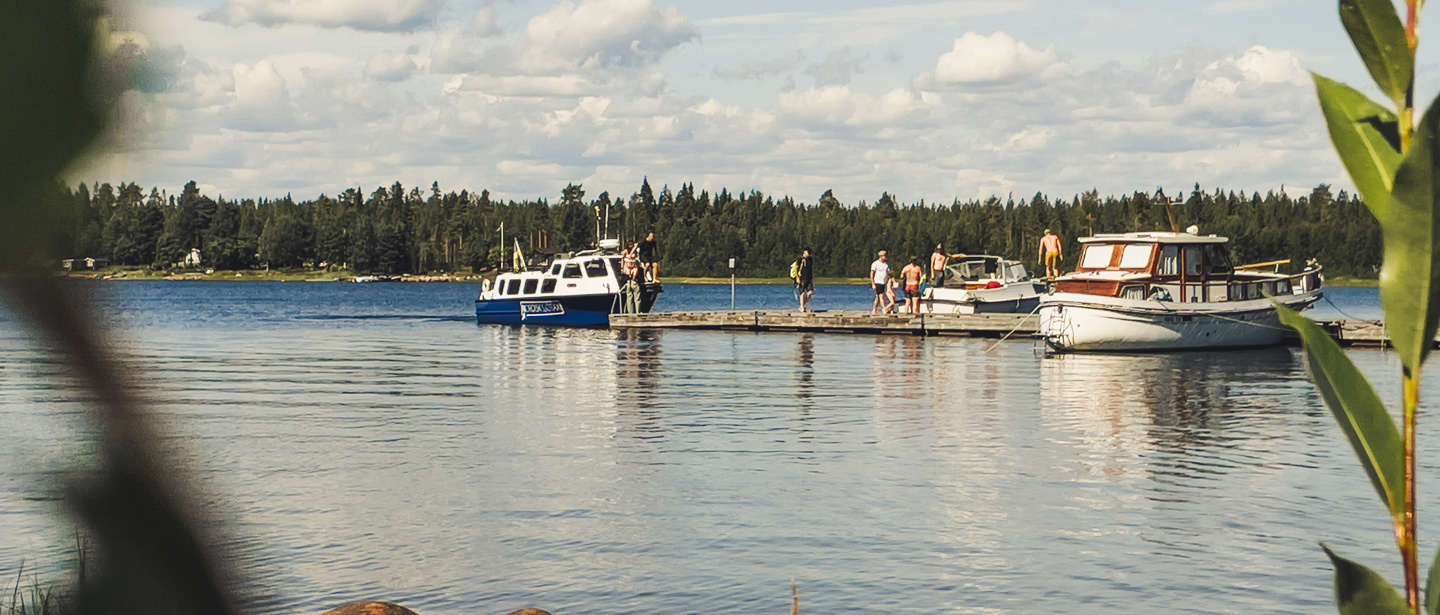 Vår första dag i skärgården flyter på i sakta mak och lika så gör vi, där vi paddlar runt med barnen på våra hårt pumpade SUP-brädor. Det är 18 grader i vattnet. Så där härligt uppfriskande som vi Västerbottningar är vana vid. Barnen fryser men vägrar att erkänna det. Vi varvar bastu med abborrfiske, lagar mat över öppen eld och då och då lägger Nordisk Sjötaxi till med sin turbåt för att släppa av, eller hämta upp nyfikna dagsbesökare. Här slår vi läger i våra tält och upplever en vacker solnedgång över fastlandet innan vi somnar till ljudet av det muntra, skrattande båtfolket nere vid gästbryggan. Ett ljud som hör skärgårdslivet till.
